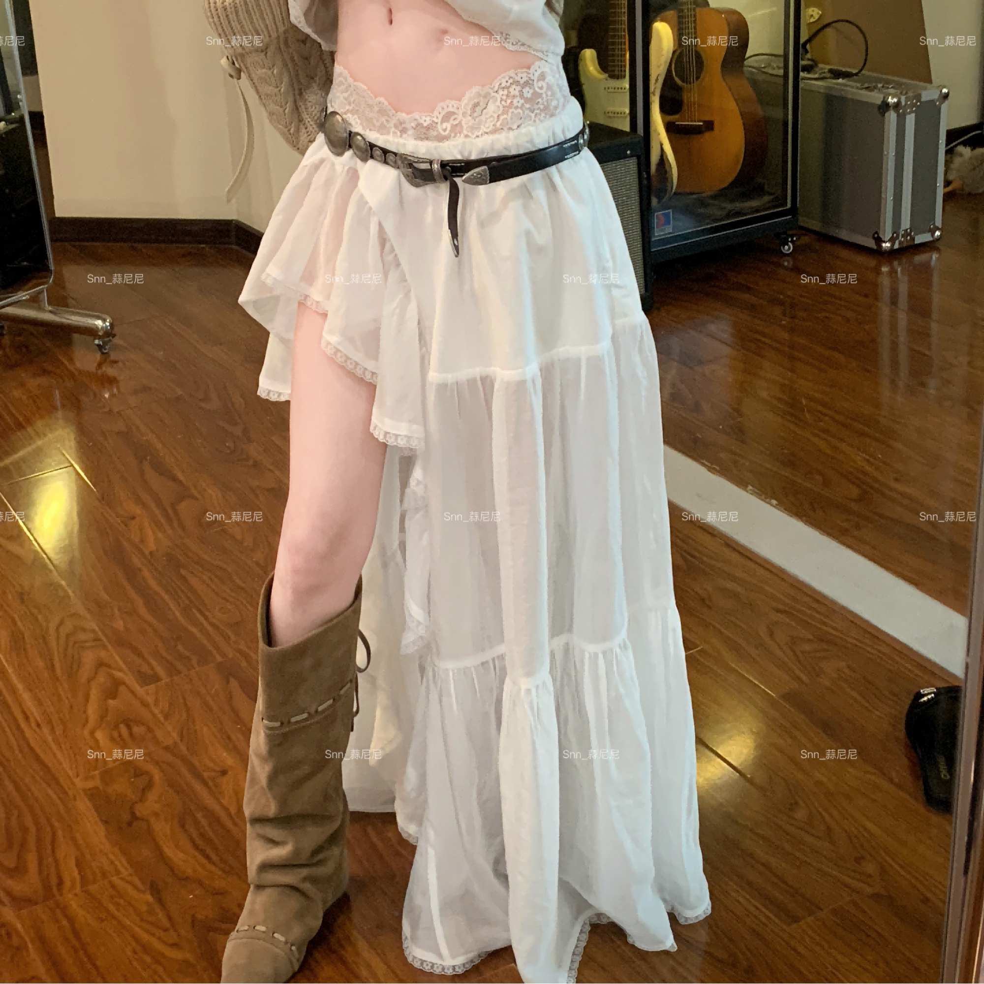 蒜尼尼【花漾少女】度假海岛灵动松弛蕾丝气质时尚半身裙1103 - 蒜尼尼