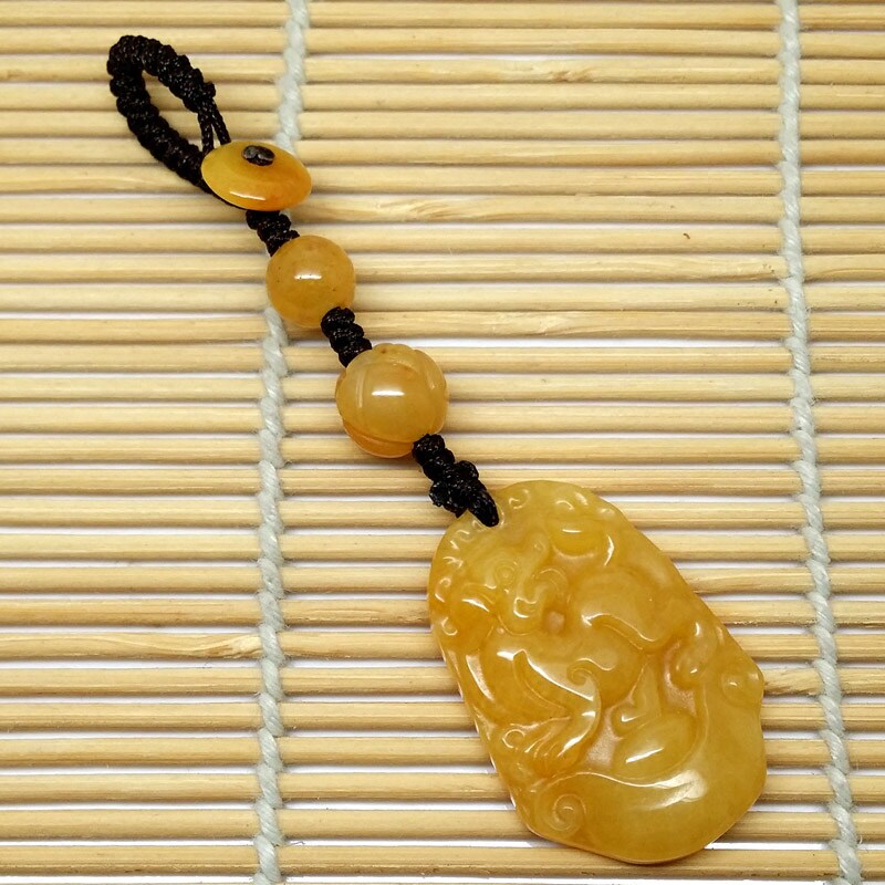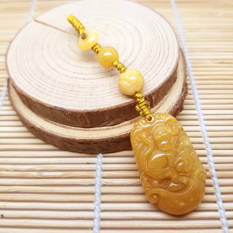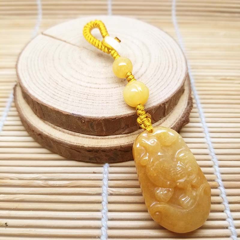 2026本命年天然黄玉十二生肖鸡猴龙羊牛狗莲花珠钥匙扣挂件手机链 - 晶艺良缘