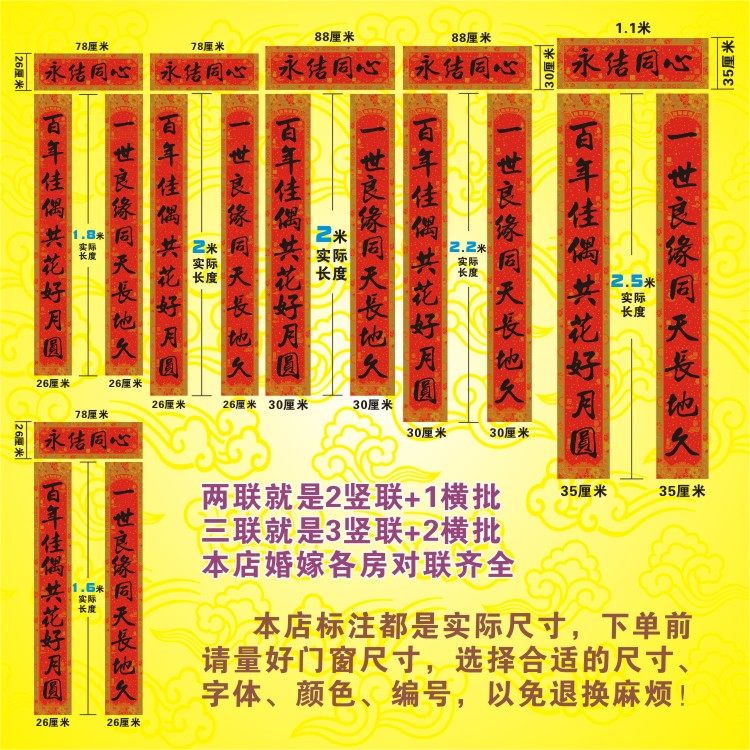 您的位置:恰鹿券集市  >  居家  >  新婚大门烫金对联喜庆婚礼春节书法装饰可选长度字句包邮铜版纸
