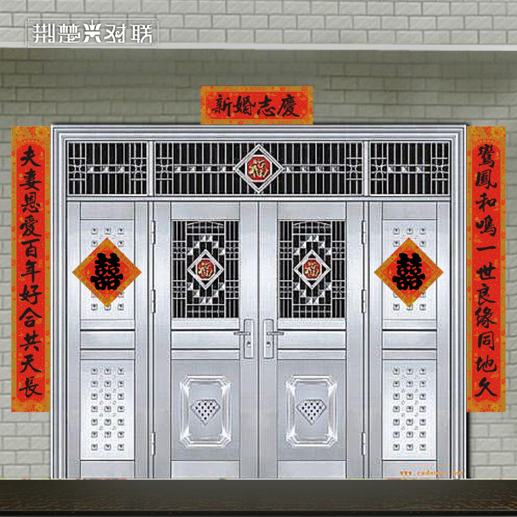 新婚大门烫金对联喜庆婚礼春节书法装饰可选长度字句包邮铜版纸 - 荆楚兴对联