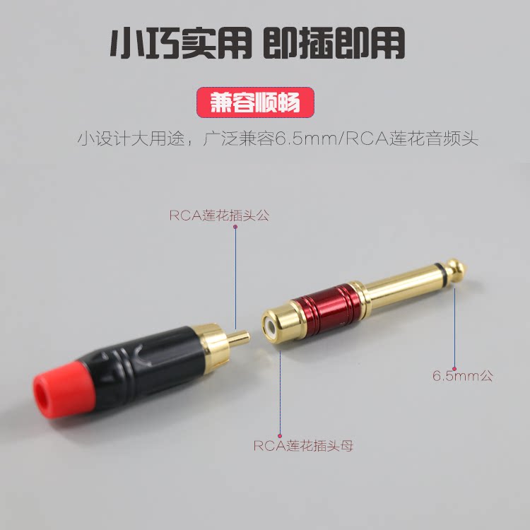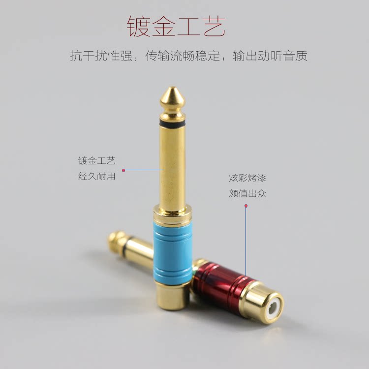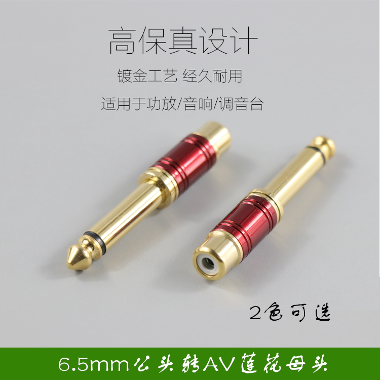 全金属6.5转莲花头 调音台音频转换头 6.5mm插头转AV口 转接头
