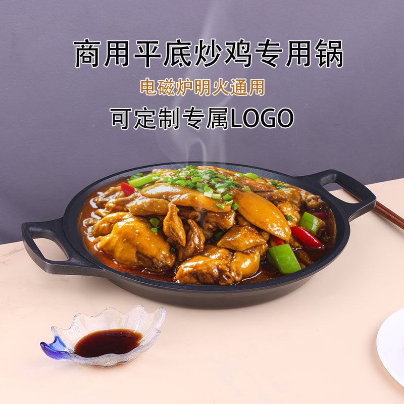 商用40CM双耳平底不粘春川铁板炒鸡锅电磁炉大盘鸡专用卜卜贝盘子 - 博艺厨具酒店用品