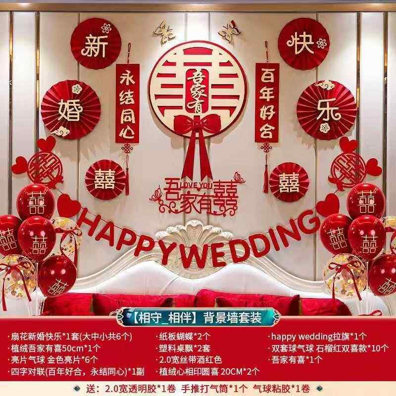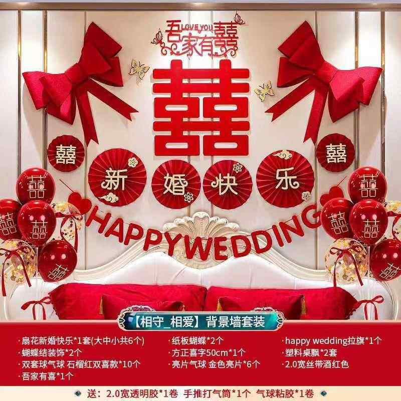 直销新款结婚婚房布置套装结婚女方卧室喜字拉花装饰男方新房婚庆 - 磁照商贸