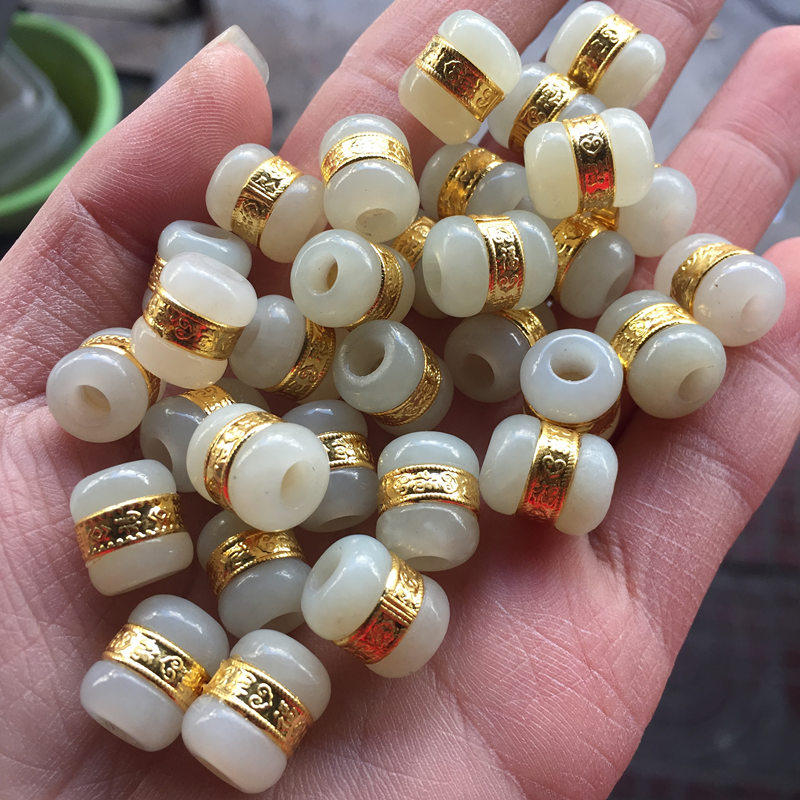 天然和田玉手串金镶玉转运珠路路通小配件diy手链项链吊坠玉饰品 - 亿家玉源珠宝直销店