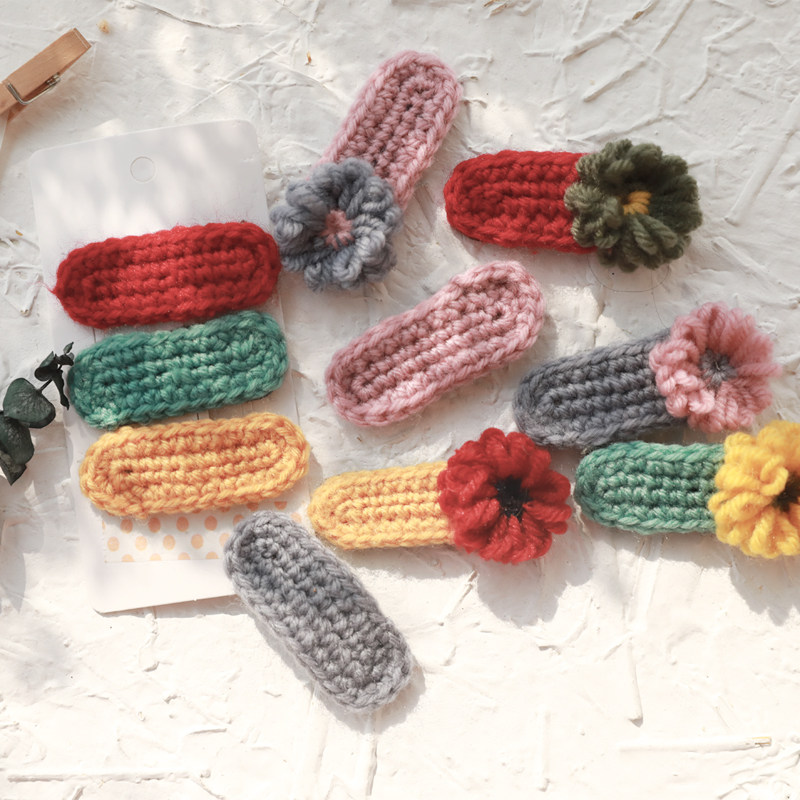 轻轻慢 韩国儿童发饰女童毛线钩织彩色发夹宝宝针织刘海夹大BB夹 - 轻轻慢儿童饰品