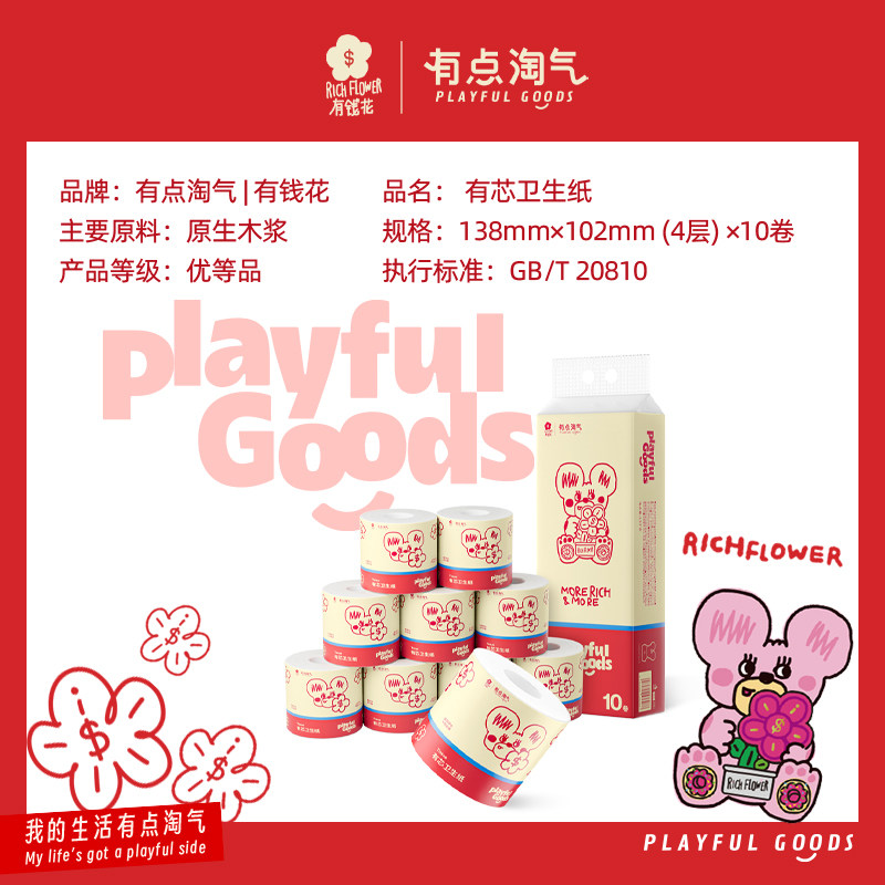 有点淘气X有钱花有芯卷纸4层加厚优等品10卷/提