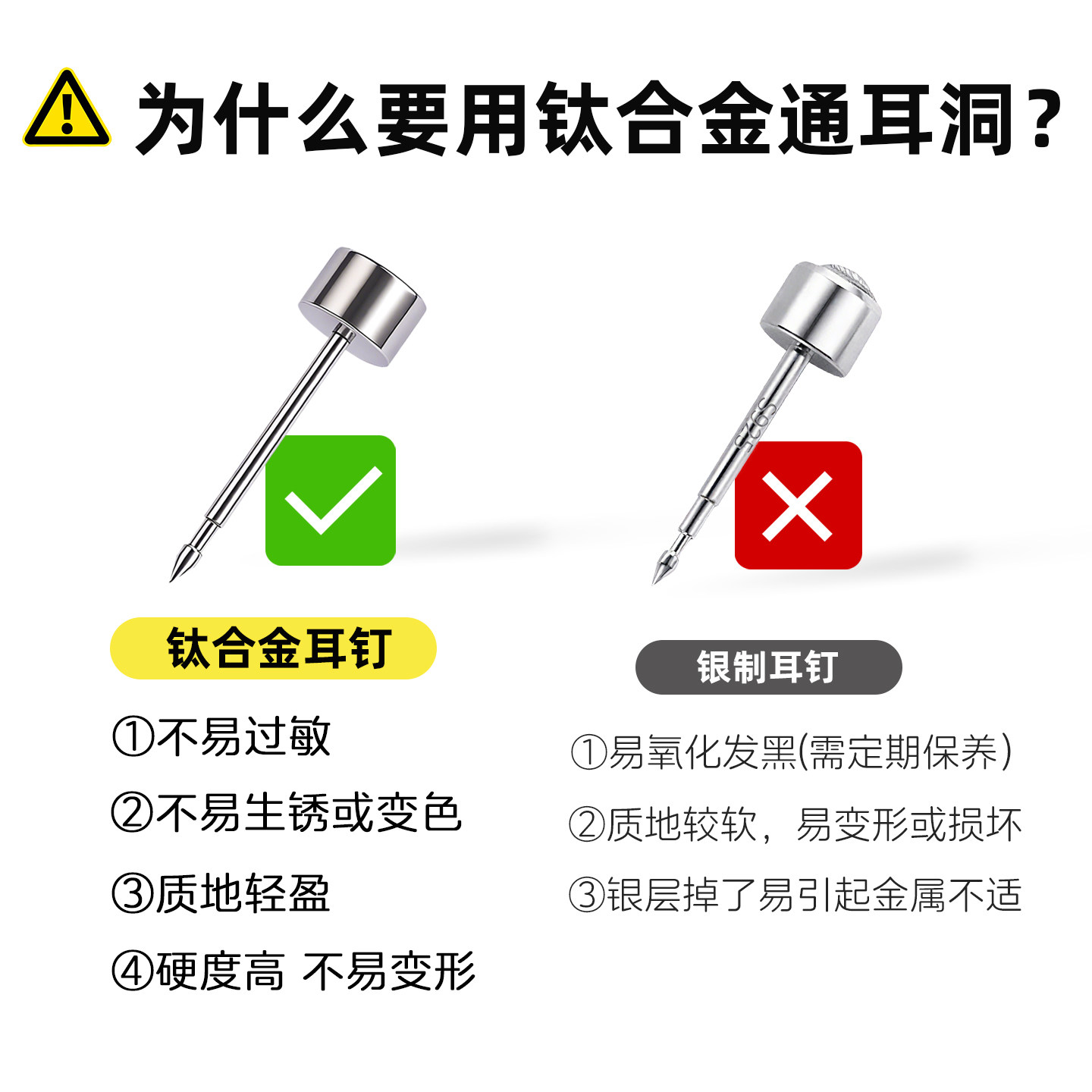 通耳洞钛合金耳钉尖头神穿耳孔针耳洞复通器养耳洞针耳蜗钉防堵针 - 听谷旗舰店