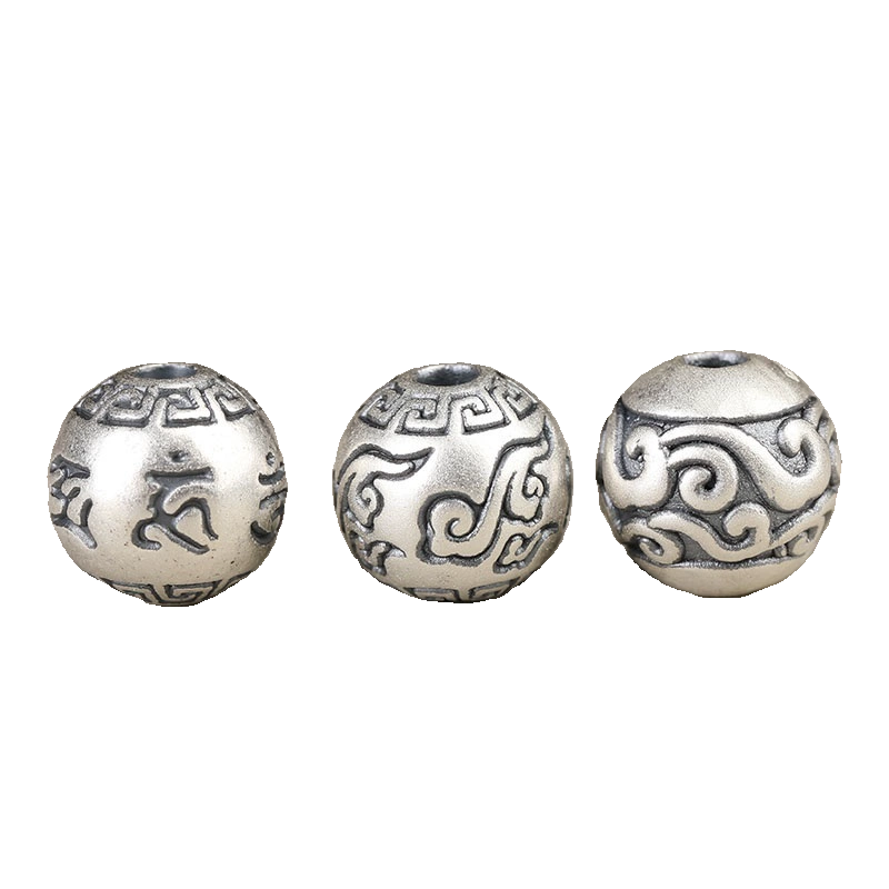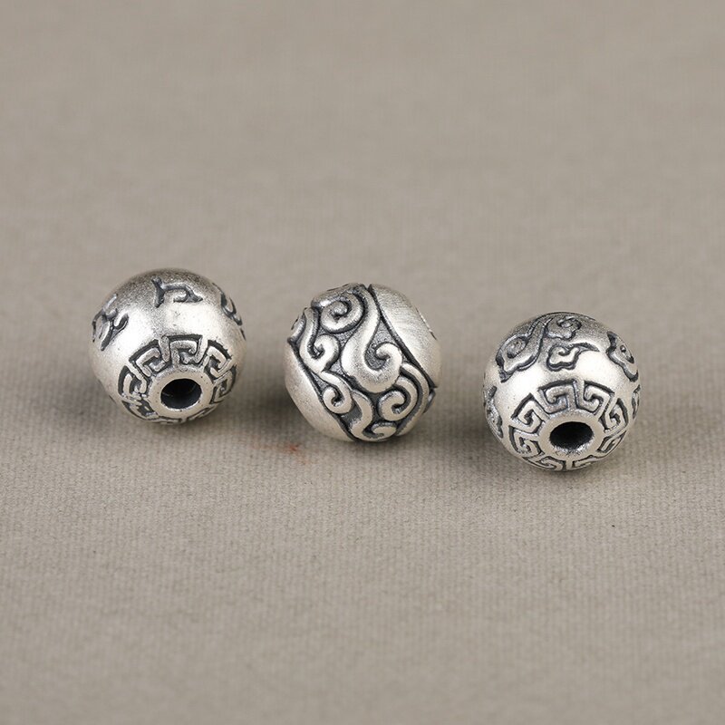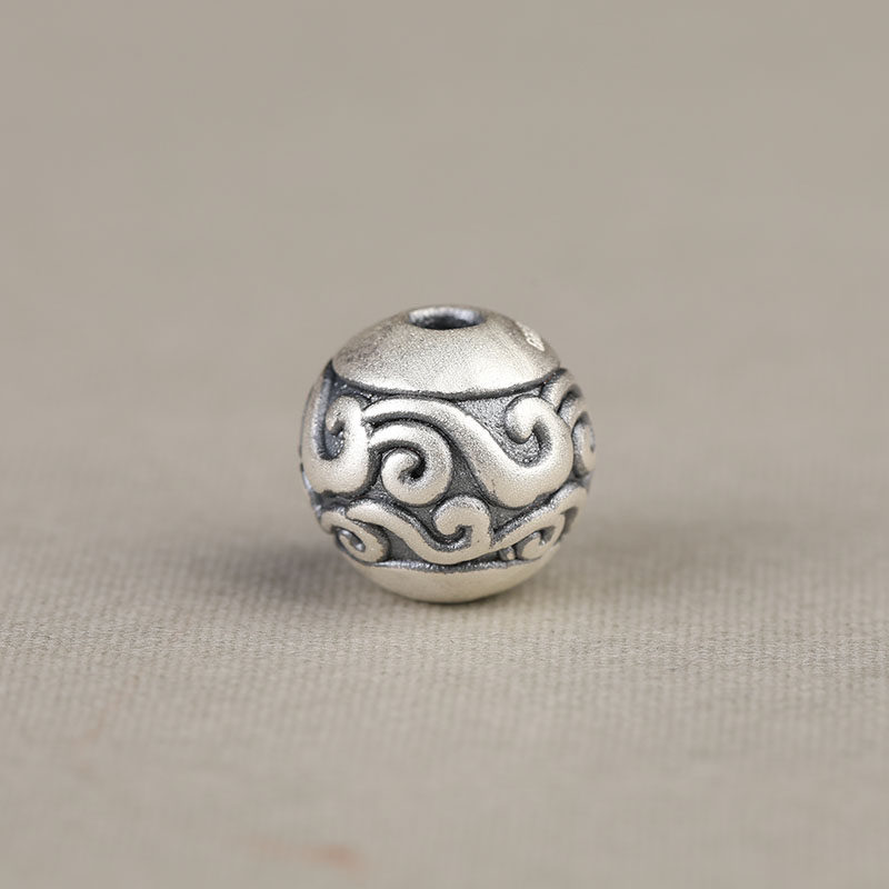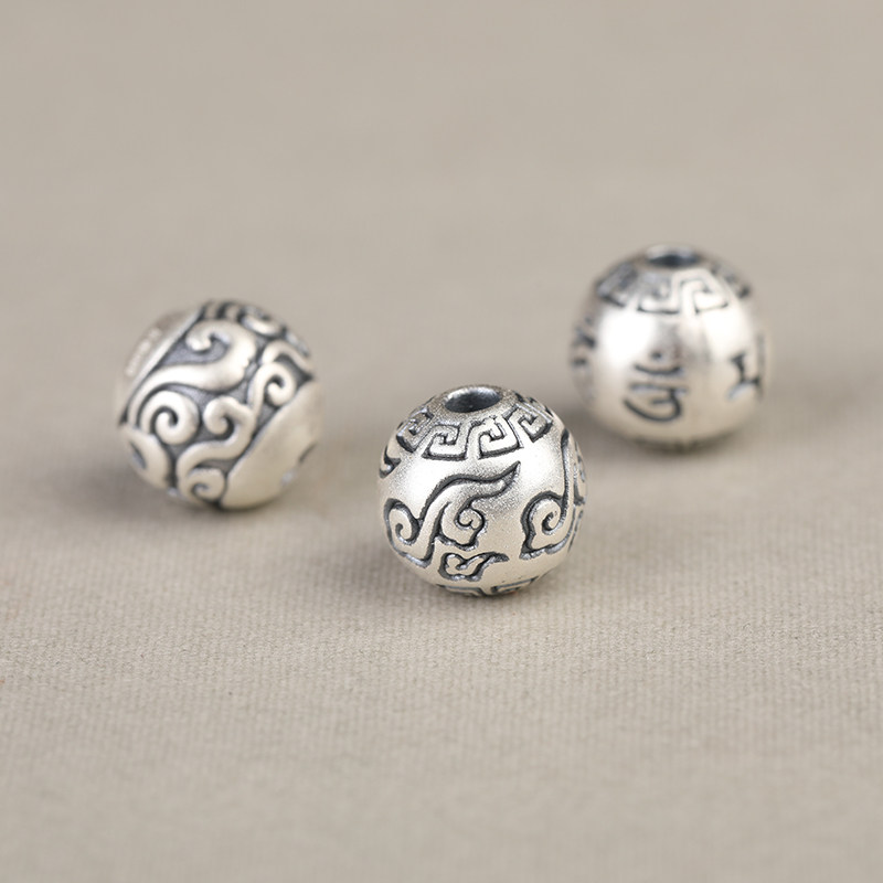 S999纯银足银真银祥云回纹六字如意散珠DIY男女手链挂件配件隔珠 - 滴水石缘