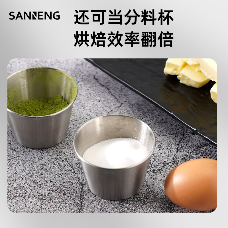 三能304不锈钢比重杯布丁杯食品级100ml烘焙分料配料杯可放烤箱 - 三能摩登烘焙器具企业店