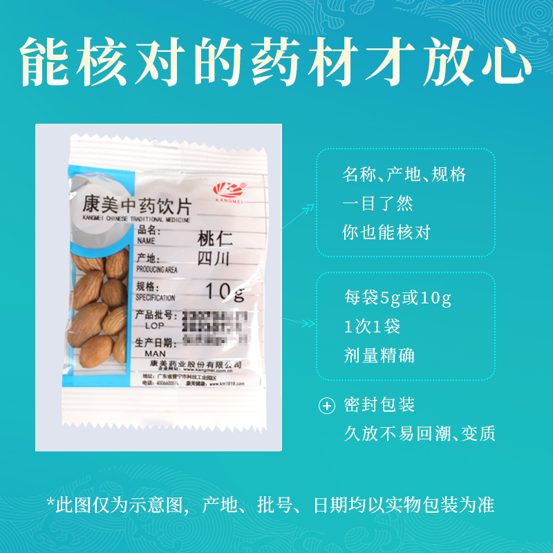 康美药业 桃仁 10g多规格精制中药饮片中药材店铺抓配官方旗舰店 - 康美官方旗舰店