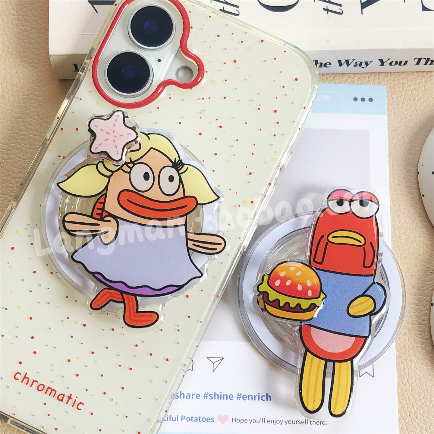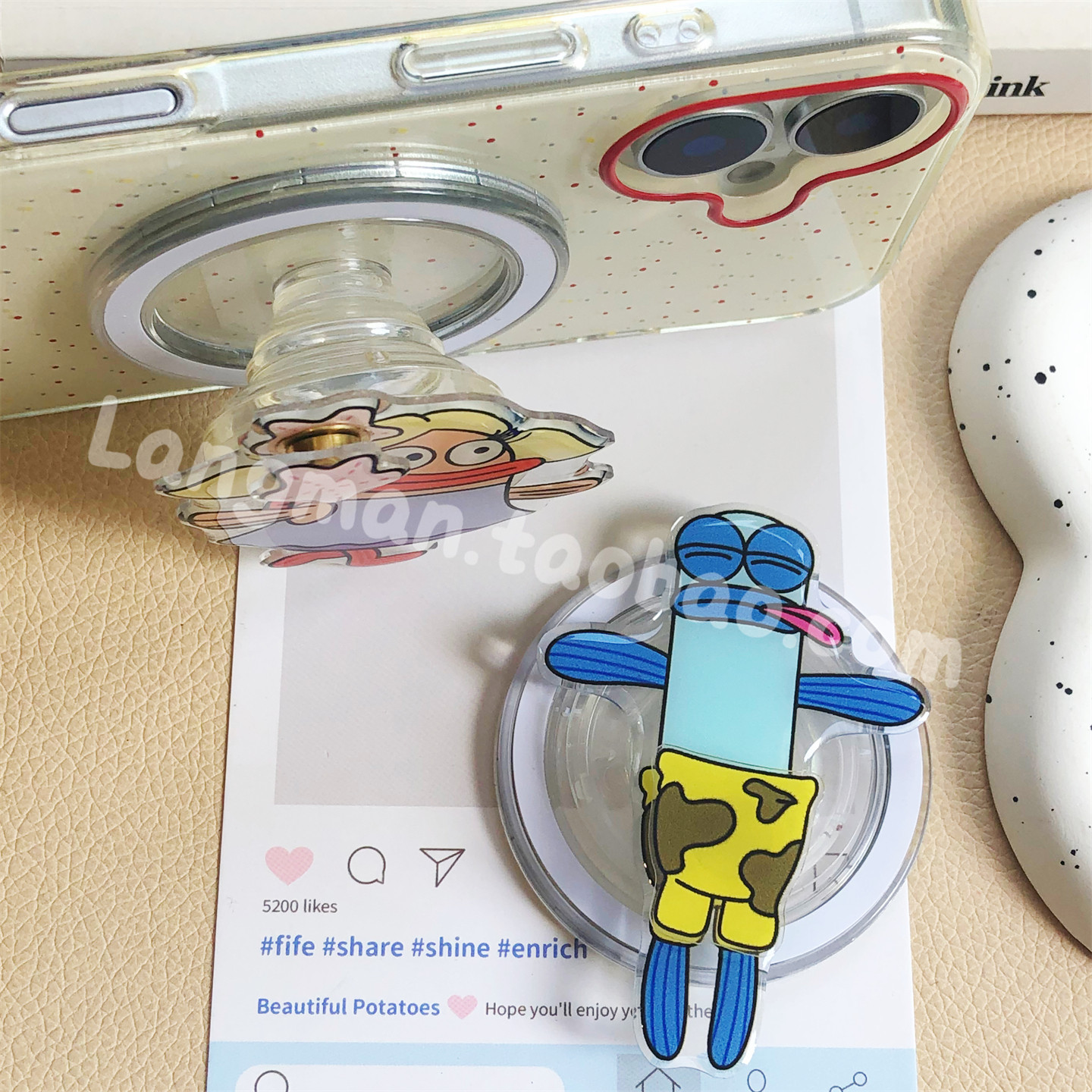 可爱卡通动漫比奇堡居民手机磁吸气囊支架适用magsafe懒人桌面ins - 浪漫膜法壳