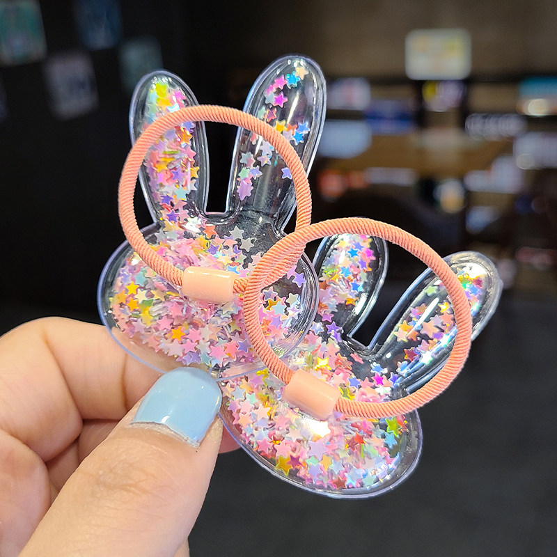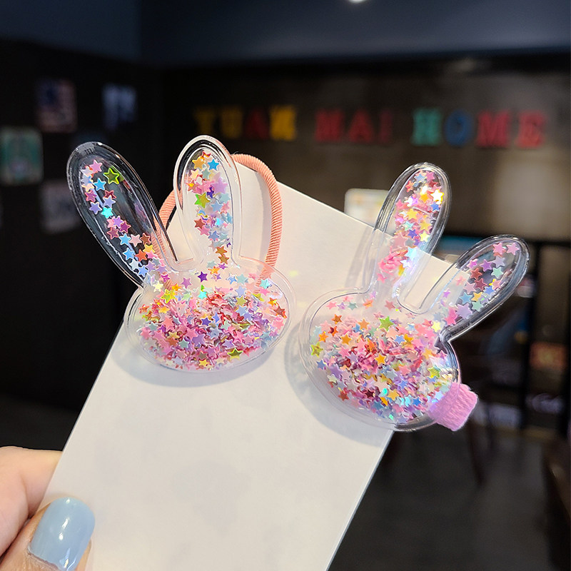 流沙小兔子发夹皮筋儿童可爱公主发饰刘海夹韩国宝宝不伤发头绳 - 小蓝莓