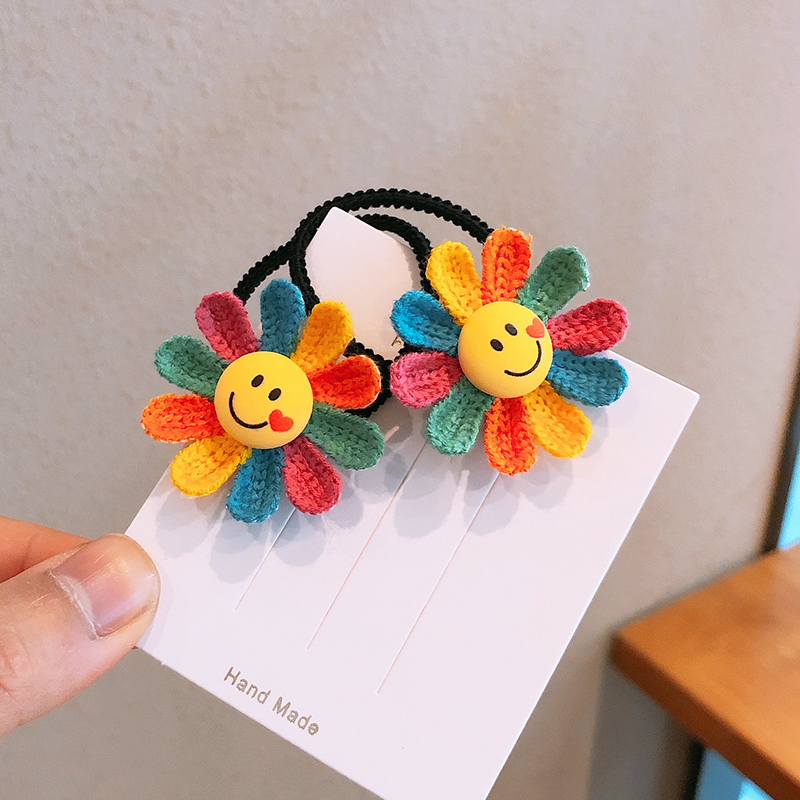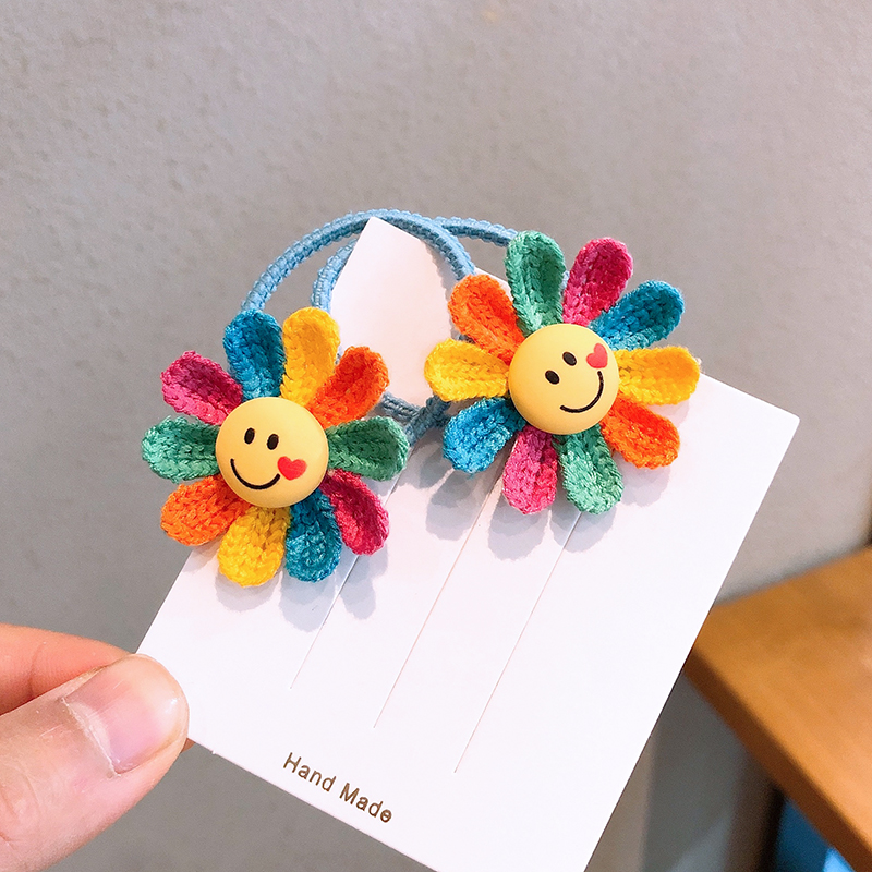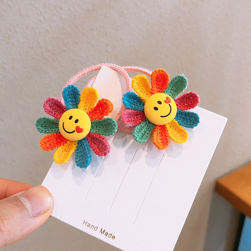 儿童发饰可爱彩色太阳花发圈小女孩头绳扎辫子皮筋笑脸头花发绳 - 宝贝喜欢儿童饰品