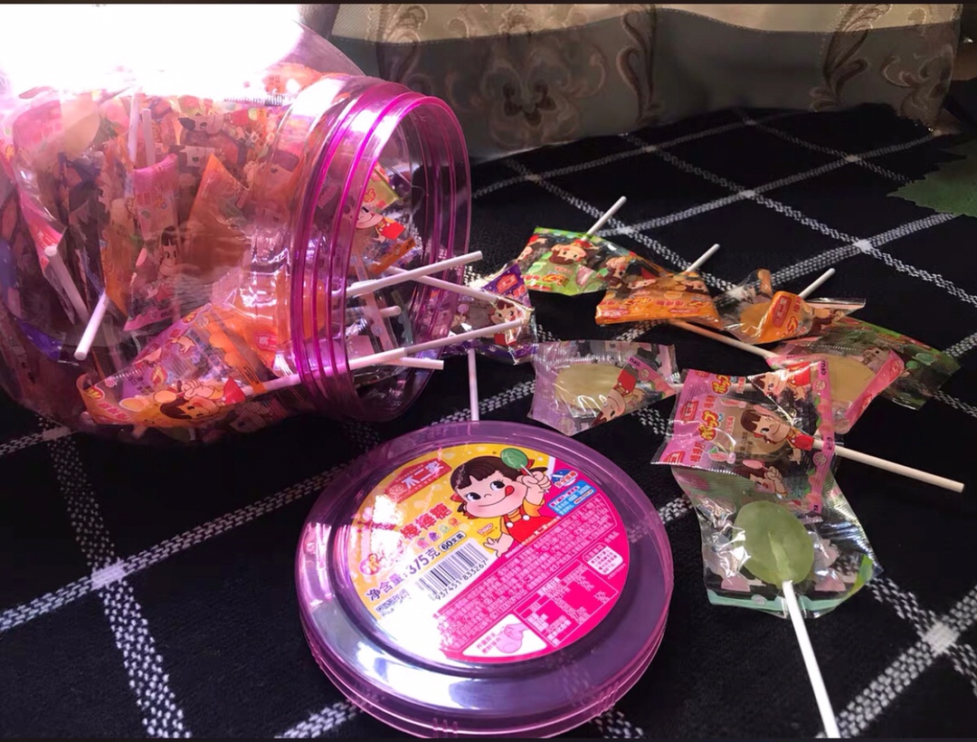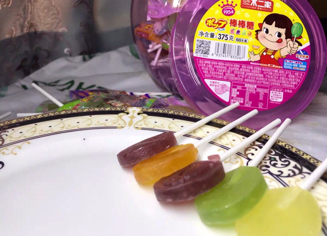 猫超的快递真的超级快。下单第二天就收到货了。赶在中秋节当天派送了。 妥妥的,童年味道,超级大一罐,超级满足。一罐一共有60多个棒棒糖,香橙味,葡萄味,哈密瓜味,蜜桃味。怎么吃都不够,,谁还不是个宝宝了,哼。棒棒糖,走起,。 不二家的棒棒糖,哄小孩子首选