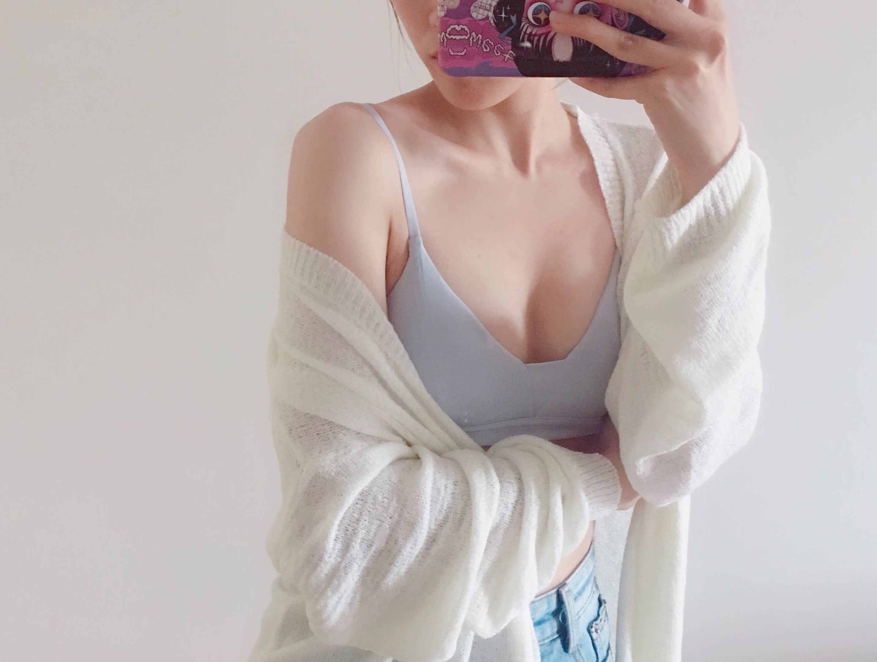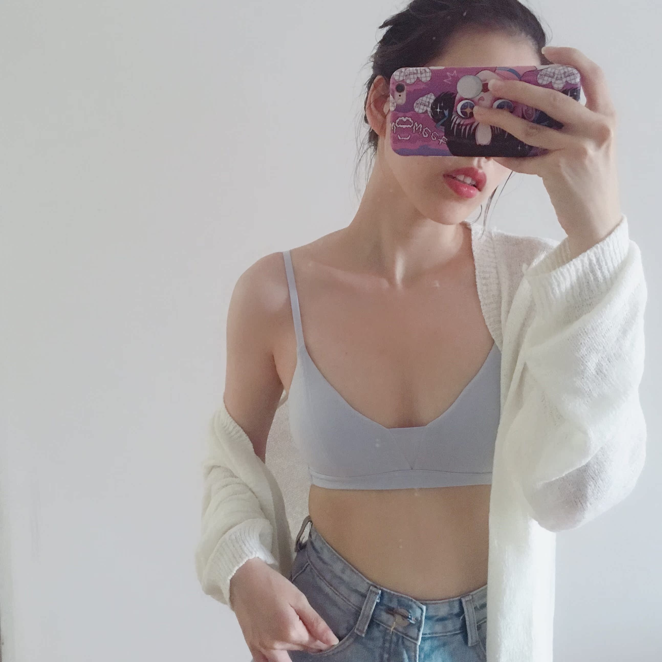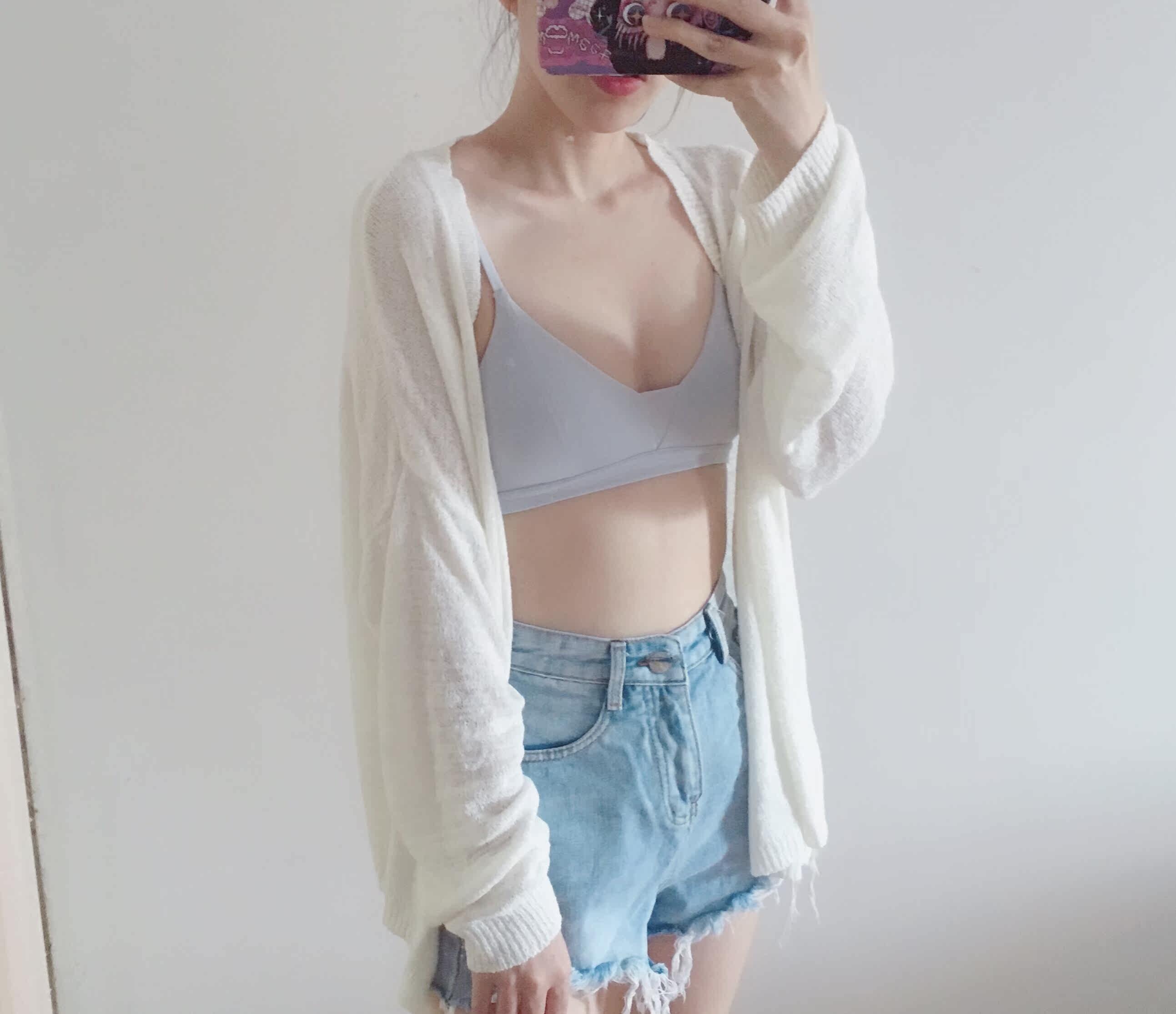 好看 适合皮肤白的妹子~ 颜色是浅浅的蓝,和图片几乎没色差。 个人觉得超赞! 75b穿m码刚好~
